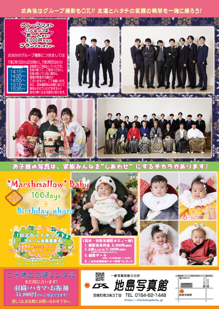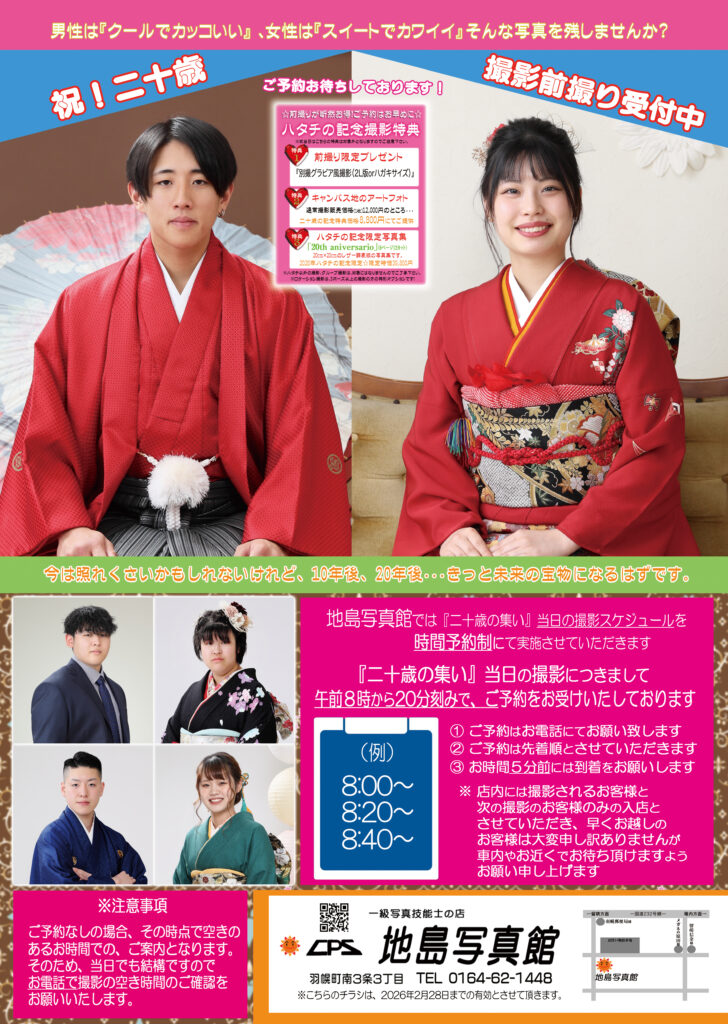 20歳になったみんなへ・・・「Photo Fes20祭」 前撮りも、式典後も会えるのを楽しみにしています。
